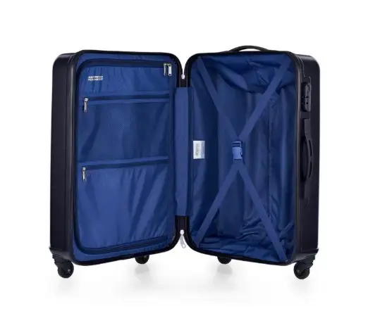 Size and Material Material: 100 % ABS Volume: Small-35L / Medium- 65 L / Large- 115 Weight: S-2.8 Kg M-3.8 Kg L-4.5 Kg Warranty: 3 YEARS INTERNATIONAL Dimension: S: 55x 36 x 24 / M: 68 x 46 x 30/ L: 79 x 54 x 35 Features Double wheels: TSA Combination Lock: Yes Cross Packing Strap: Yes Mesh Pocket: Drop Pocket: Internal organiser : Yes