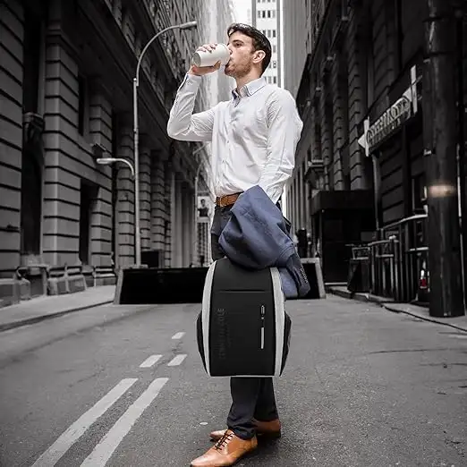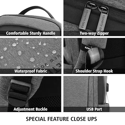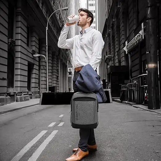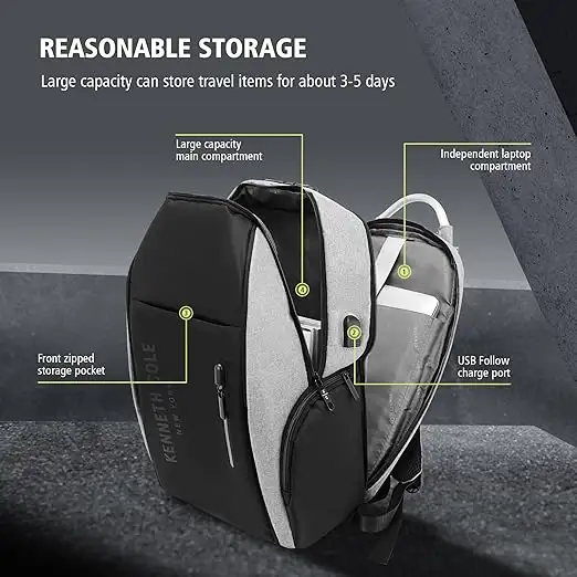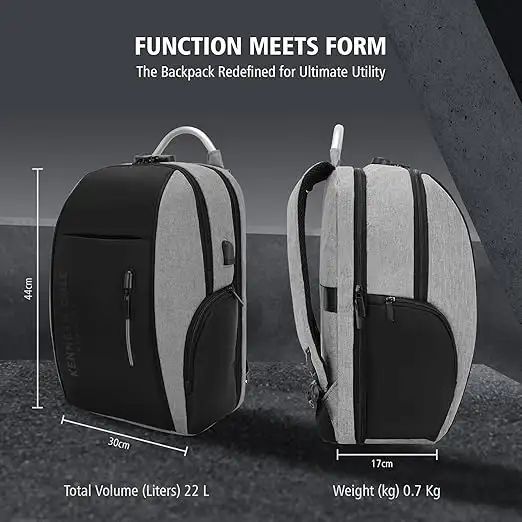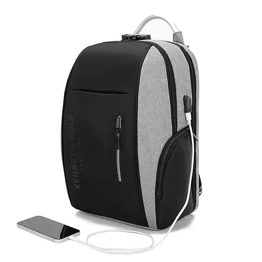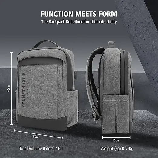 Protect your laptop and stay organized on the go with this laptop backpack from Kenneth Cole. The durable polyester ensures longevity, while the ergonomic design supports all-day wear. Perfect for work, school or travel, this black and grey laptop backpack combines practicality with modern aesthetics. Bag Type Backpacks Capacity 20,20 Care Instruction Wipe with Damp Cloth Closure Type Zip Color Black & Grey Compatible Laptop Size 17,17 Feature1 Durable Construction: Crafted From High-Quality Materials, This Backpack Is Designed To Withstand Daily Wear And Tear. Feature2 Spacious Capacity: This Unisex Backpack Offers Ample Room To Store A Laptop, Books, And Other Essentials For Work Or Travel. Feature3 Stylish Design: This Unisex Backpack Features A Sleek Different Colour Variations With A Contrasting Grey Accent, Perfect For Both Casual And Professional Settings. Material Type Polyester Net Quantity 1 No of Compartments 2 No of pockets 5 Size Medium Strap Type Adjustable