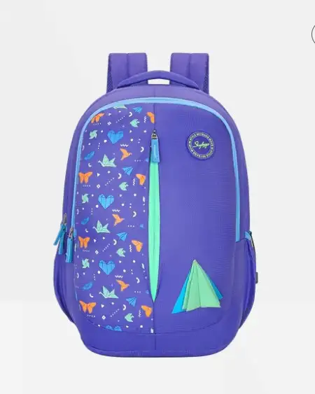 Description Spice up your school journey with a backpack that's big on fashion and functionality. Carry your books, carry your style, and let every day be a runway! FEATURES Brand - Skybags Gender - Unisex AgeGroup - Kids Material - Polyester Closure Type - Zip Strap Type - Adjustable Style Name - Backpacks Capacity (Litres) - 32L Trolley - No Laptop Sleeve - No Tablet Sleeve - No Rain Cover - No Water Proof - No Warranty Type - International Warranty Duration - 12 Months KEY FEATURES 3 Main Compartment 1 front pocket Grab handle Padded Shoulder Strap Organizer File Sleeve Printed ID Tag Bottle Pockets with Loops Built to last straps 1 Year International Warranty